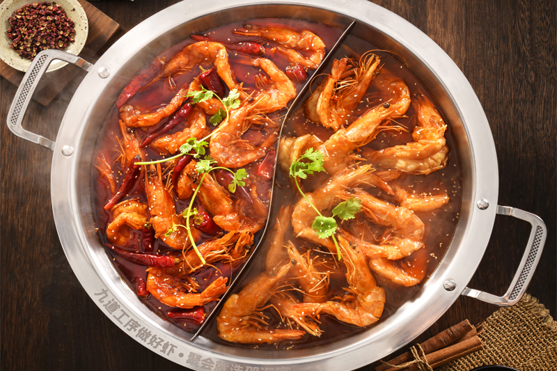 食材精選進口大蝦,搭配秘制底料制作而成,研發出一鍋兩吃的飲食模式(先吃蝦后涮菜,葷素搭配隨心選),打造出綠色健康的飲食新文化。